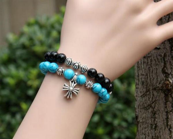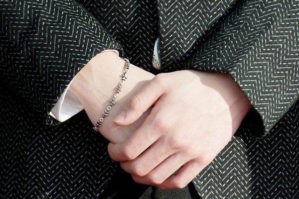 虽然以银饰制品为主,然而 Chrome Hearts 也打造了蓝、黑等多款串珠手链,与其经典的十字架、罗马字母元素一同出境,吸睛度爆表~(价格:4000+)