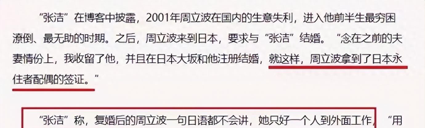 在周立波的甜言蜜语和哄骗下,张洁与日本丈夫离婚又复合。