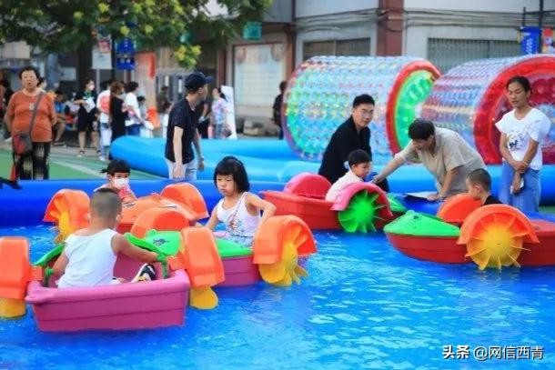 同时也有非遗的文化展示,儿童的玩乐水上区域,套圈、气球射击,还有80后、90后回忆童年的活动,种类超多,全民参与,超级好玩!