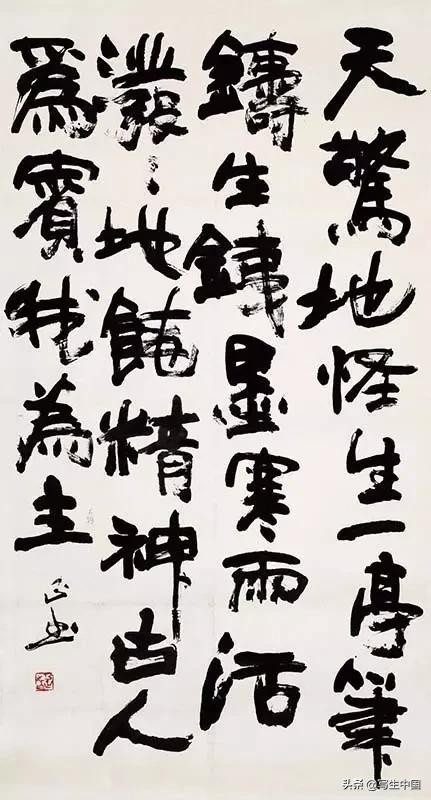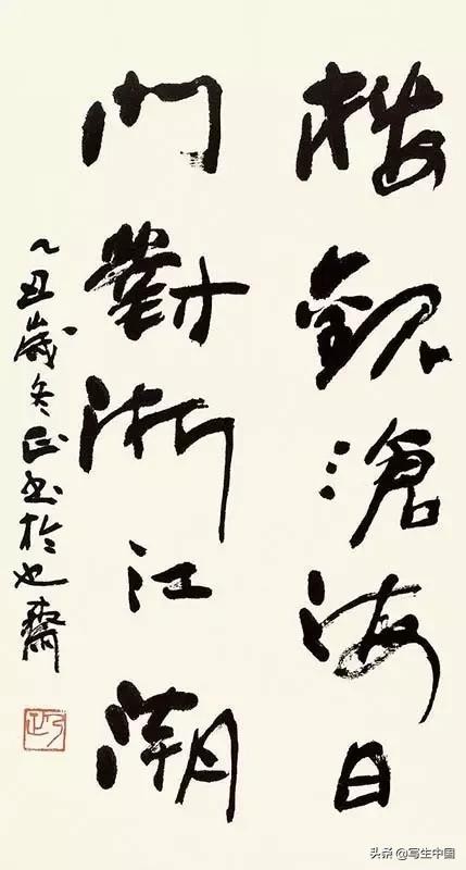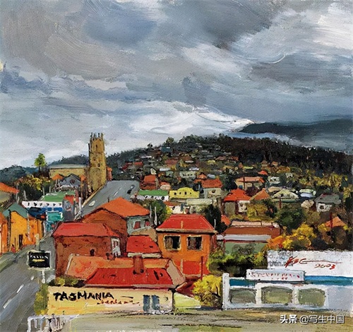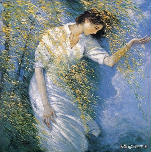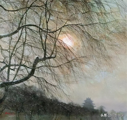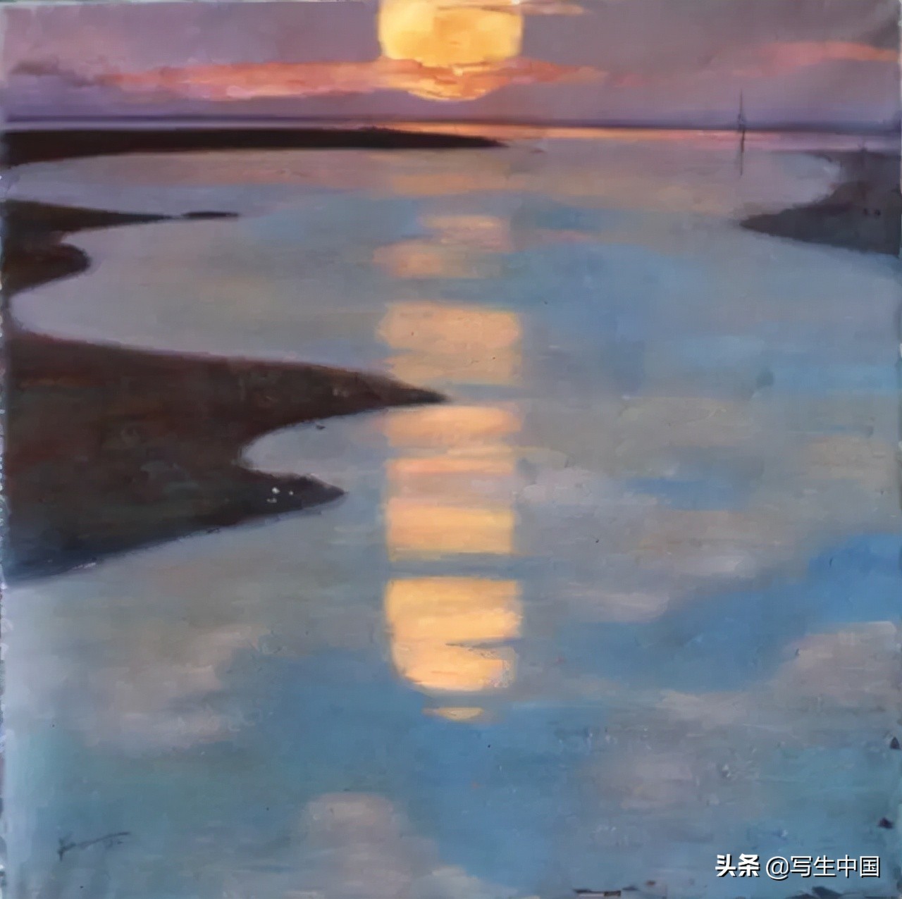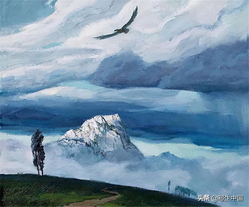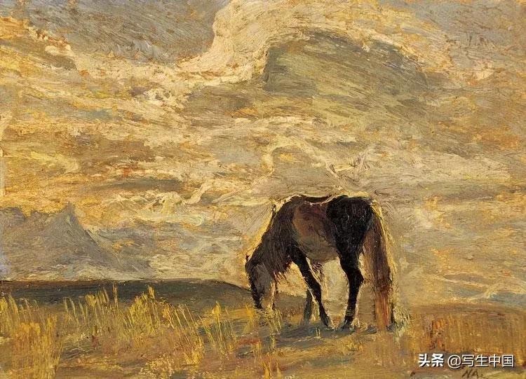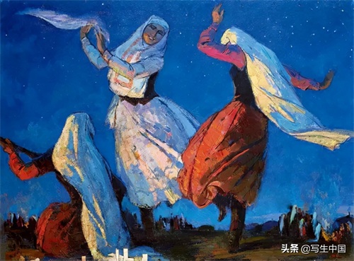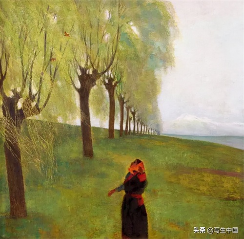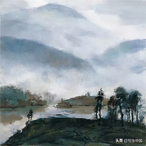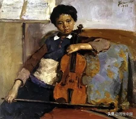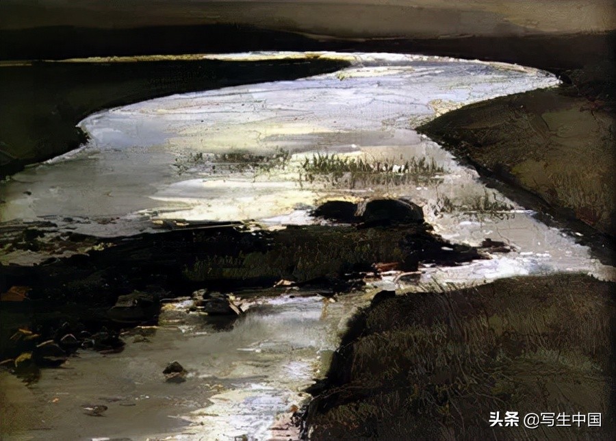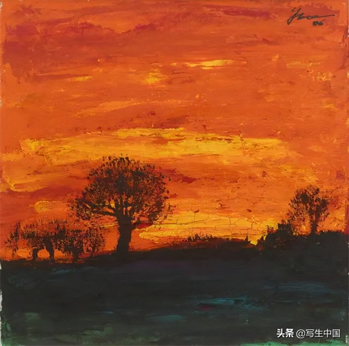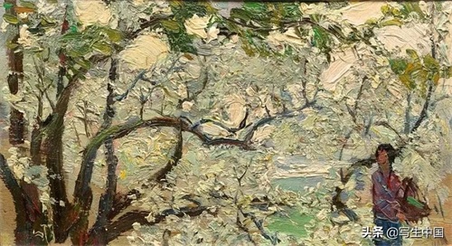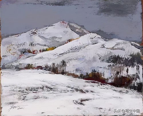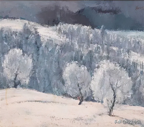 笔势流动,线条抒情。黑白点面突出、画面响亮明快。用中国毛笔直接画油画,视觉上拉近了油画与中国画的距离。