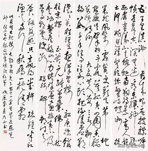 《草书昆明大观楼长联(四屏)》立轴纸本136×33cm×4,1988年作