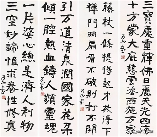 《楷书佛教楹联(四屏)》镜心纸本61×17cm×4