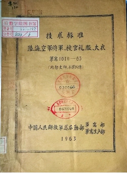 1963年总后军需部、军需生产部《陆、海、空军将军、校官礼服、大衣技术标准》