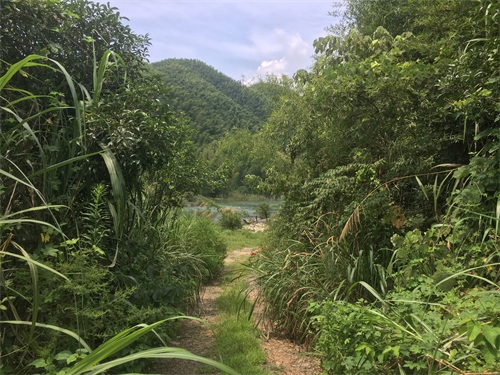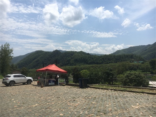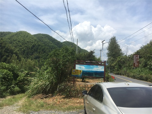 就在这个【万亩竹海】牌牌的右边小路下去,车不能开下去,可以走过去