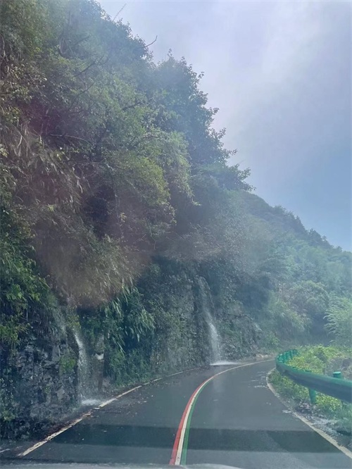 像上面的雨水瀑布,一路上有很多,有的涓涓细流,有的将山体冲下来,占了半个路面。