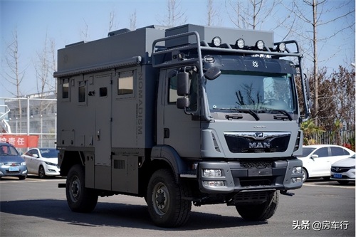 作为中国重汽推出的首款四驱越野房车,它的出现填补了国产自主研发重卡越野房车的空白,整车运用德国曼TGA整车技术,在细节工艺方面与进口MAN底盘保持一致;车长在六米内,动力搭载10.5T柴油发动机,最大功率268KW,最大马力360,峰值扭矩达1800N.m,动力强劲,还有三把差速锁有效保障行车时的稳定性。