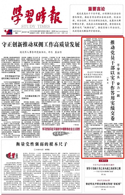 3月31日出版的《学习时报》,刊发上海市委常委、组织部部长张为的署名文章《干字当头 奋力一跳 推动党员干部以实干作答用实绩交卷》。