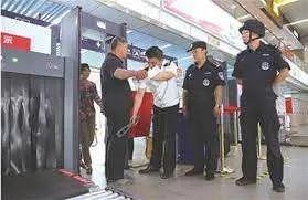 在进入火车站时,需要通过安检机,将行李放入X光机中,然后通过金属探测门。如果行李中有液体,需要在安检口处进行开箱检查。