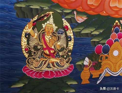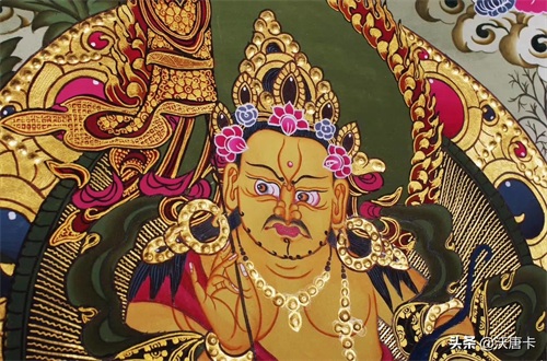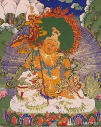 多闻天王,身据北俱芦洲,身着七宝庄严甲胄,有佩刀,左手上卧有一只神鼠,右手持伞或幡,一方面能够引导世人从善,一方面能用武力喝退邪魔,尊身为绿色,以恩赐众生福德而闻名受尊。多闻天王还有一个身份就是古印度的财神,施财天。