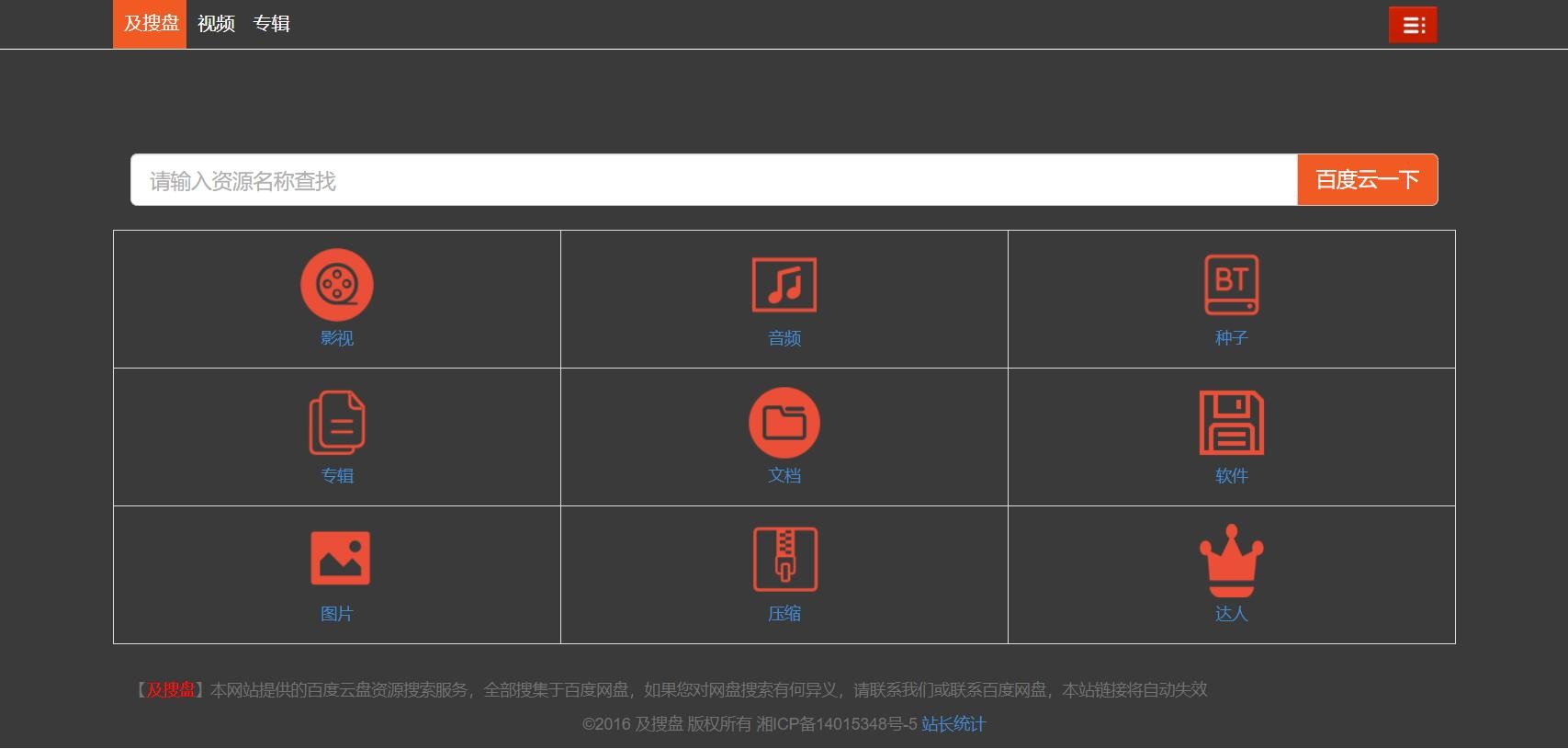 一个非常特别的搜索网站,整体分为九类,可以直接在某个分类中搜索,也可以搜索后切换分类。