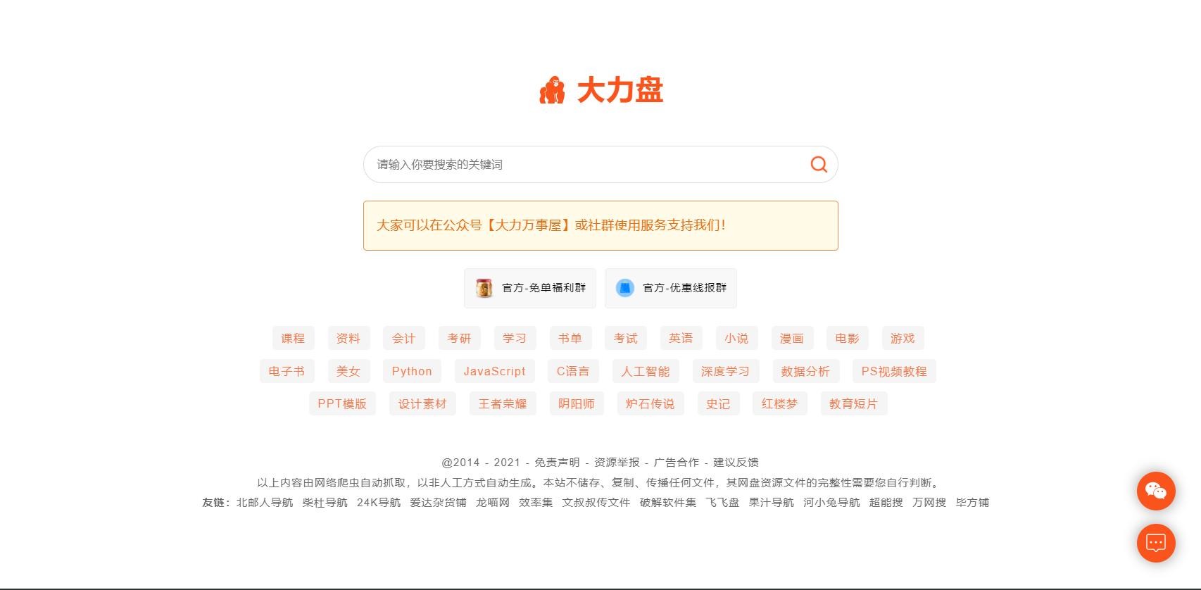 同样非常简洁,无需注册登录,可以免费使用,有网站热门搜索词汇,可以看出都是我们刚需的资源,而且更新速度非常快,不易失效。