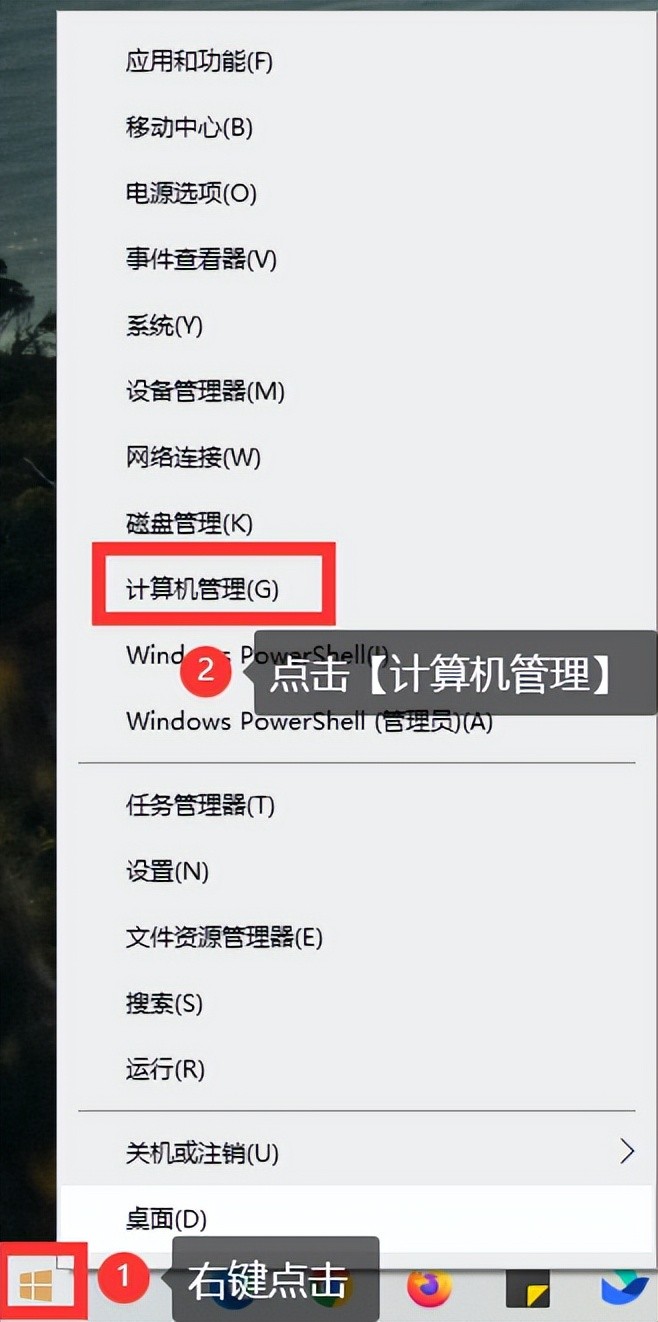 步骤1:右键点击电脑左下角的开始菜单,找到并点击上方选项中的【计算机管理】