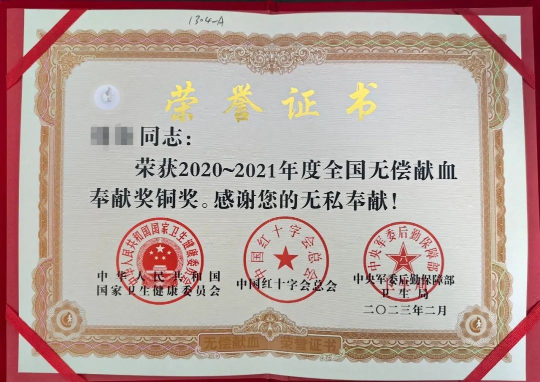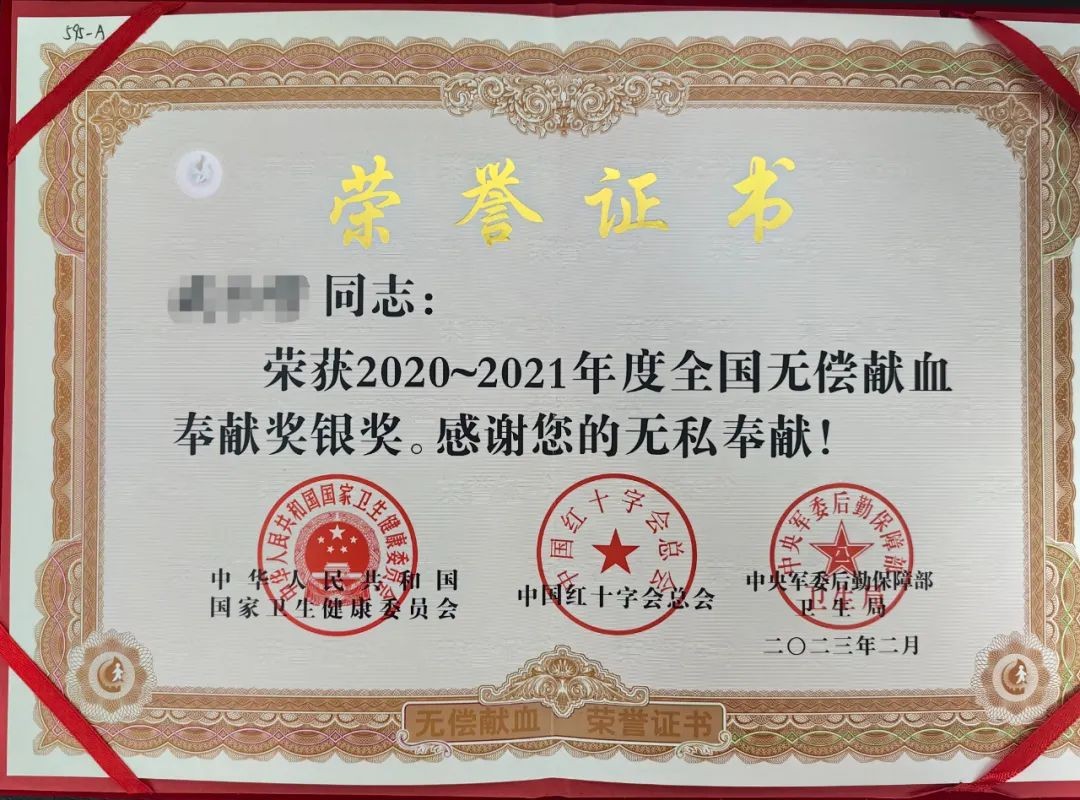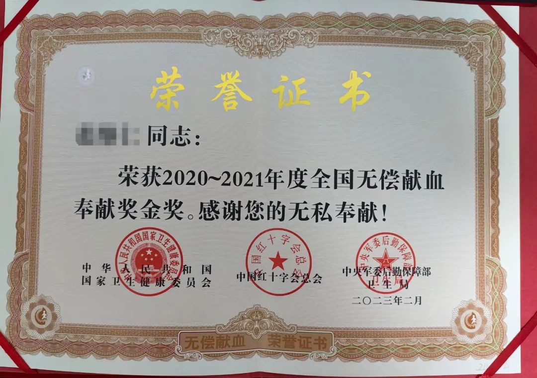 “无偿献血奉献奖”