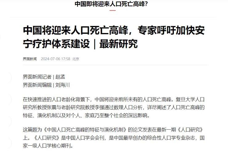 界面新闻,中国将迎来人口死亡高峰,专家呼吁加快安宁疗护体系建设|最新研究
