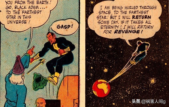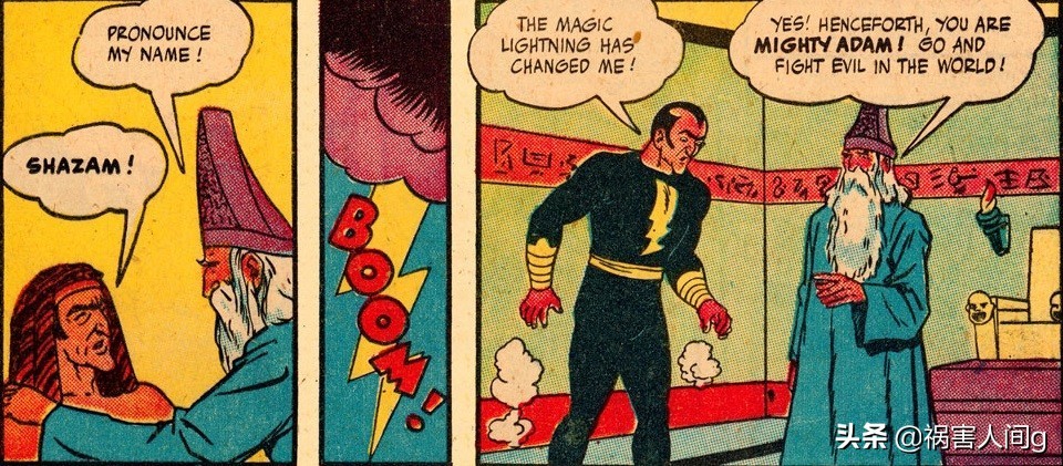 愤怒的巫师沙赞给特提斯.亚当取了一个新的名字就是黑亚当。但他无法剥夺黑亚当的能力,只好将黑亚当放逐到宇宙中最遥远的星系。