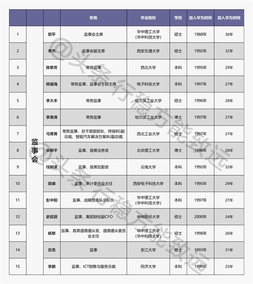 华为监事会15名成员全览