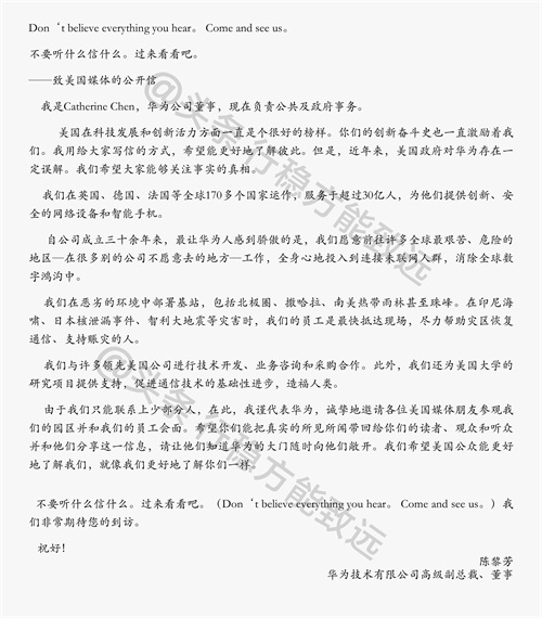 我们来一起看下当时陈黎芳写的《致美国媒体的一封信》吧,不卑不亢,有理有据!