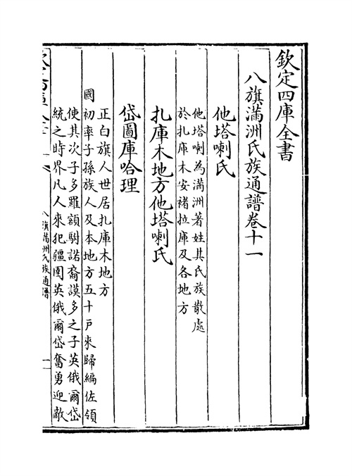 (图为《钦定八旗满洲氏族通谱》书内他塔喇氏部分首页,可以看到“著姓”一词。)