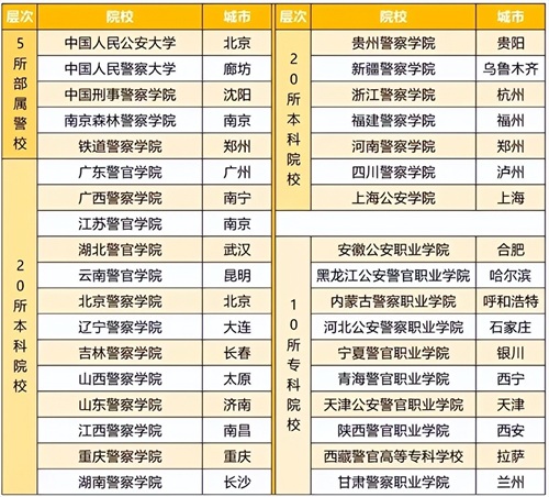 我国共有35所警校可以参加公安联考,其中从国家重点名校到专科院校都有,考生首先要对这35所警校有所了解,才能根据高考成绩选择出目标院校,比如排名前三的警校,属于本科提前批,一般需要考生成绩达到600分以上,不太适合成绩一般的考生。