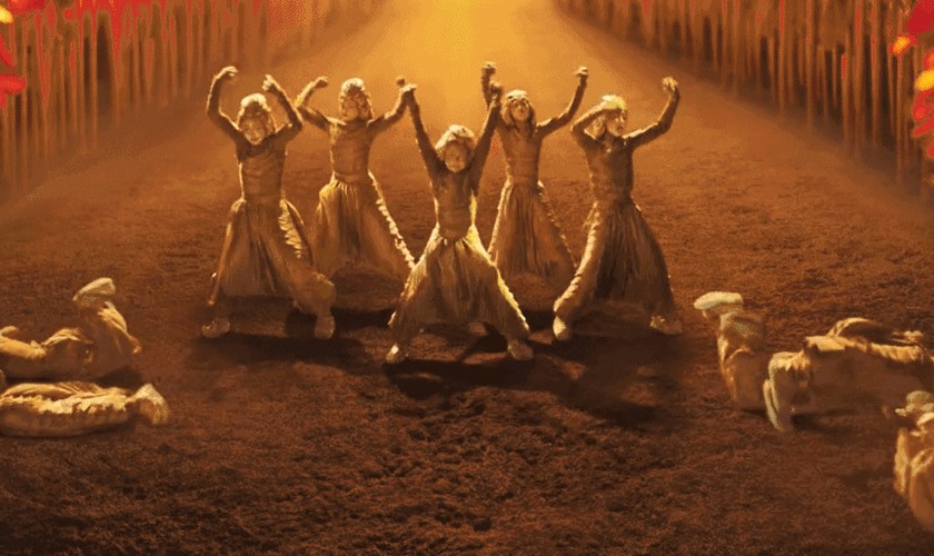 最后群舞的画面是演员们用胳膊展现蛇的样子,可能是因为背景是金色的缘故即使是一群蛇起舞也没有诡异的感觉,所以这个画面大家都接受良好。