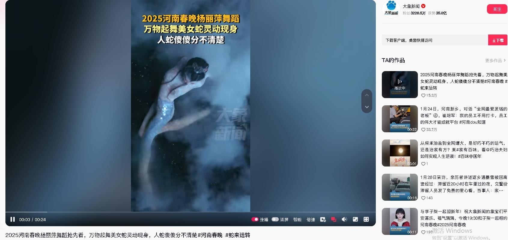 信息来源:抖音账号——大象新闻2025河南春晚杨丽萍舞蹈抢先看,万物起舞美女蛇灵动现身,人蛇傻傻分不清楚2025-01-25