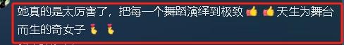 “她真的是太厉害了,把每一个舞蹈演绎到极致天生为舞台而生的奇女子。”