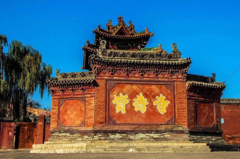资寿寺,寺院坐北朝南,筑在北纬 36度、东经11度的半山坡上,背后青山连绵,寺前溪流漏漏,山环水绕,水秀山青,为三晋古刹群中不可多得的一处胜景。2001年06月25日资寿寺作为明代古建筑,载入了《中国名胜辞典》并被国务院批准列入第五批全国重点文物保护单位名单。