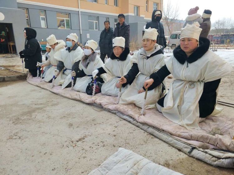 (6)按规定和要求着丧服,即民俗所谓披麻戴孝。
