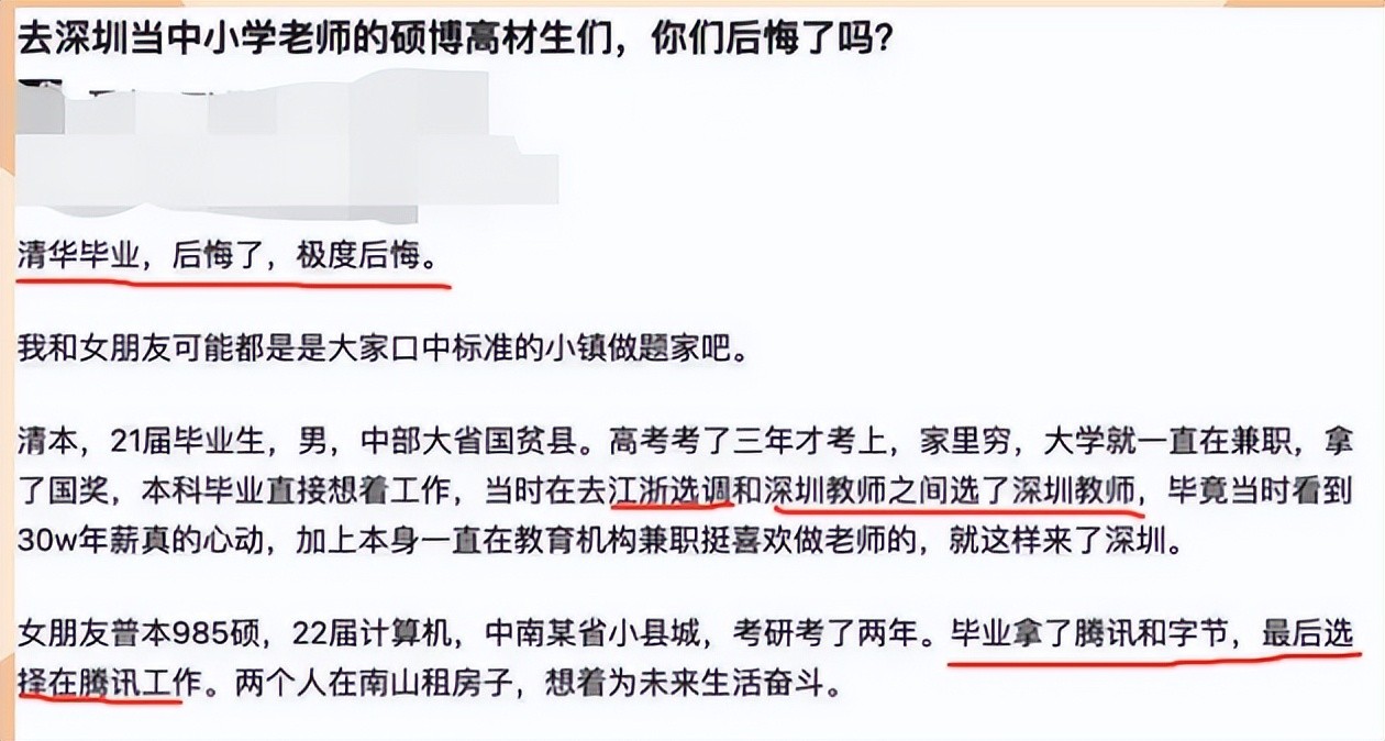 “后悔当初选择来深圳当老师”,一名清华毕业生的话,引人深思