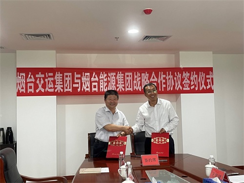 5月23日上午,烟台交运集团与烟台能源投资发展集团合作签约仪式在能源集团总部会议室举行。交运集团党委书记、董事长李岩,烟台能源集团党委书记、董事长张丰奇共同签署了战略合作协议。