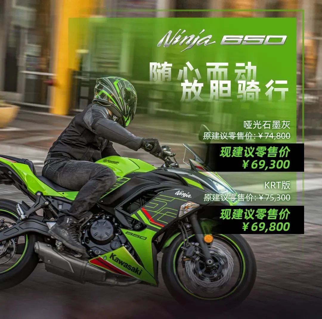 NINJA 650 原价 74800元起,现价69300元起,直降5500元