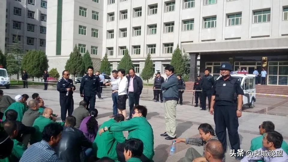 到达州政府门前,静坐。随后,上访办负责人开始询问、了解,博湖苇业五名员工代表进入诉求。