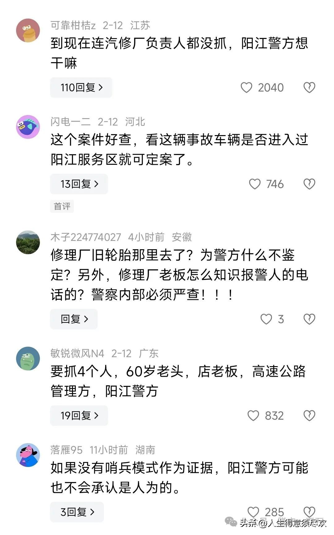 继一辆小米SU7的轮胎在阳江阳西新墟服务区,被汽修厂员工割破后,在此之前的一起发生于沈海高速阳江江城路段,且造成4人死亡的较大道路交通事故,又引发网友关注,甚至有人质疑“事故原因是否与车辆也被该汽修厂割轮胎有关”。