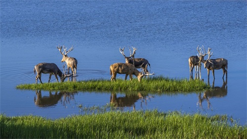 盐城东台黄海湿地公园,野鹿荡的麋鹿。(视觉中国/图)