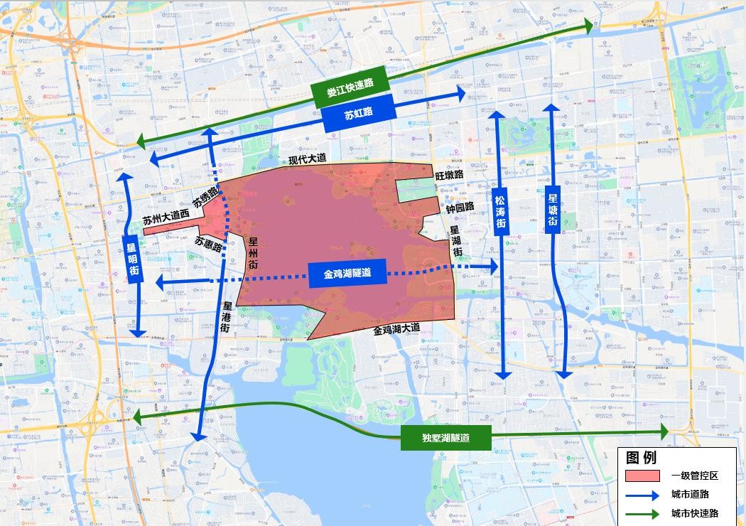 (4)跨苏州大道西(南北方向)行驶车辆,请从星港街隧道、星明街等道路绕行。
