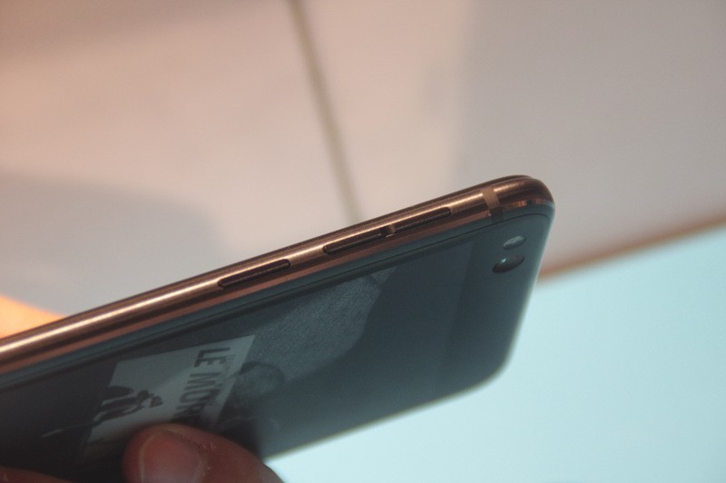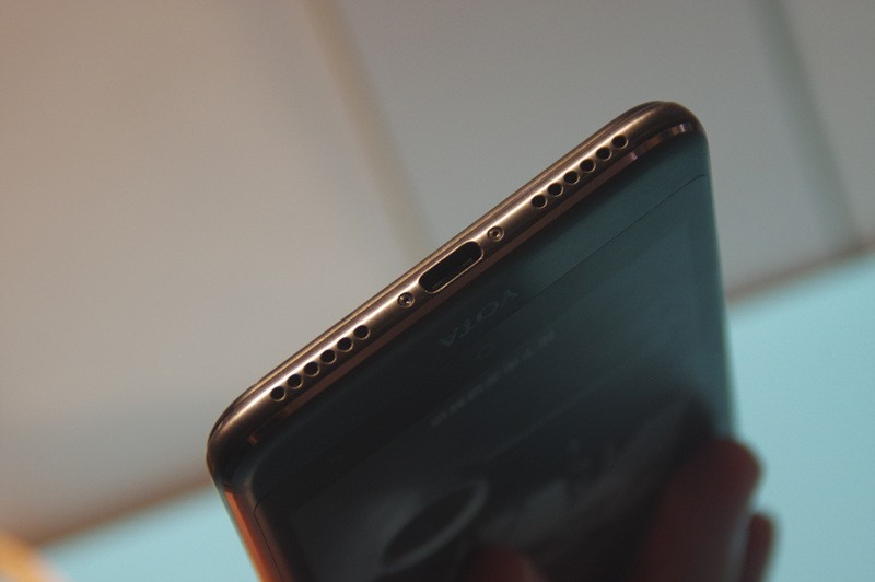 YOTA3底部为麦克风、USB Type-C接口和扬声器,常规的插口设计与国产安卓手机并无多大区别,中规中矩。YOTA3左侧上方是双卡双待卡槽、右侧则为音量键和电源键,侧边整体圆润、平滑,摸起来完全不割手。引人青睐的是,它的顶部设置了一枚距离感应器“小黑点”,能自动感应用户正在看手机的哪一面,继而自动开屏,完全免去了双屏的不便。