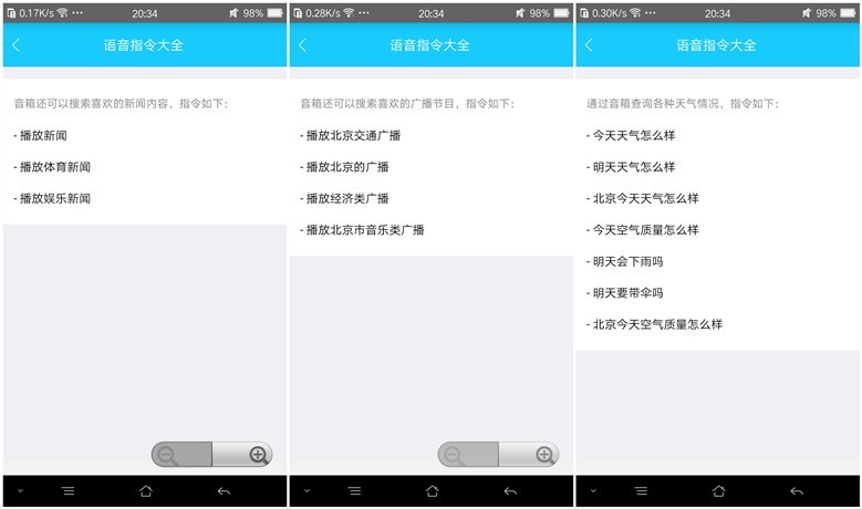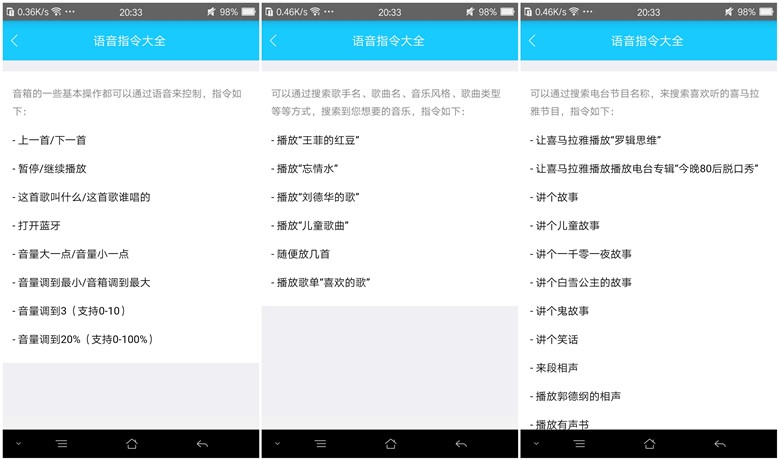 再来说说手机客户端APP,对于智能音箱来说,手机客户端APP设计的是否合理将影响用户体验。从体验来看,这款手机客户端APP具有区块明确、简单易上手的特点。整个客户端分为“音箱”、“发现”、“歌单”和“账户”四大模块,条理相当明晰。