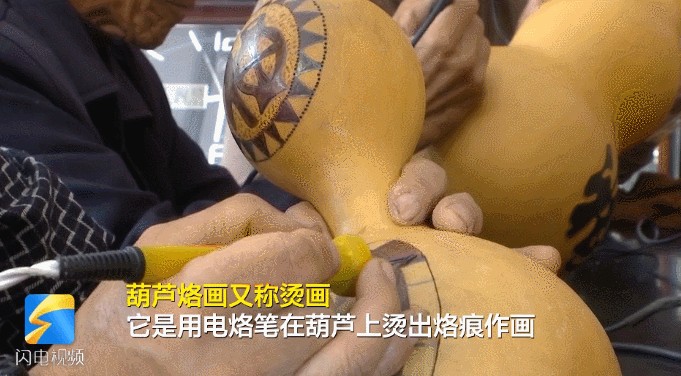 它是用电烙笔在葫芦上烫出烙痕作画,