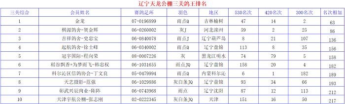 三关鸽王头甲则来自吉林榆树鸽友金龙,足环号为07-0196899的一羽雨点鸽,该羽赛鸽以首关第2名、二关14名、决赛关47名的好成绩,力压群雄,傲然折桂。