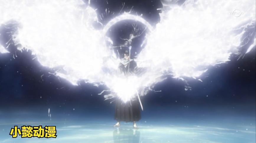 将所有灵压集于一刃并于身后形成白翼状,凝集着超强攻击力。剑身散发出强烈的寒气,可以冻结水面和大气中的水分子,将水分子凝结成飞刀,用来射杀敌人(用这招射杀朽木响河)。