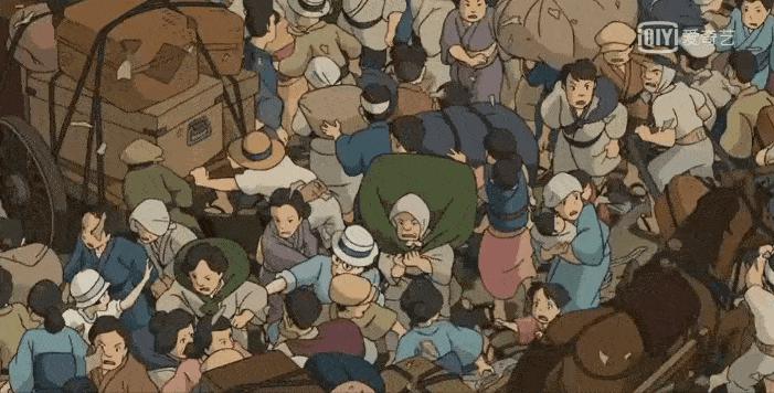 《起风了》中,有一个地震中,人群四散的画面。