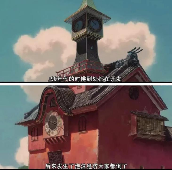 《千与千寻》的背景设定为日本经济大萧条时期,泡沫经济催生的建筑,成为荒废的旅游区。