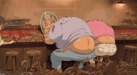 小千的父母在海量美食前不知满足,变成了猪。