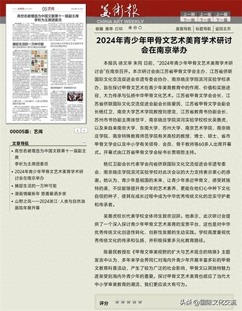 《美术报》2025年1月18日报道:2024青少年甲骨文艺术美育学术研讨会南京举行