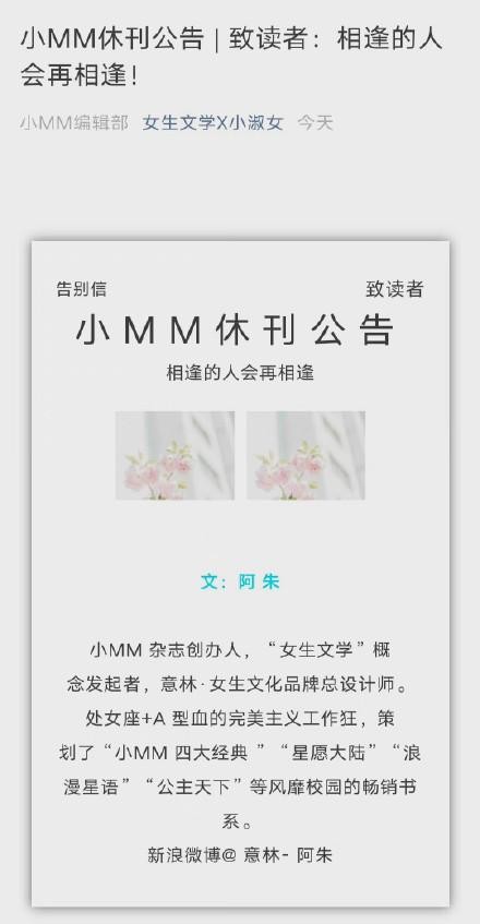 10月31日,《意林·小小姐》发布休刊公告,宣布从2022 年1 月起,将进入无限期休刊状态,同时感谢读者、作者、画手及编辑部同仁的11年陪伴。