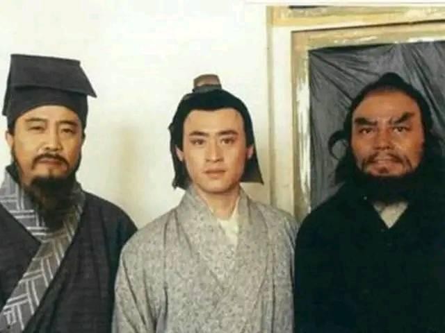 第3张照片,吴用、花荣和李逵,都带着一种角色人物的风范,三个人一脸严肃的站在镜头前,好像还没有从各自扮演的角色中出来,让人不禁感叹,这就是实力演员。