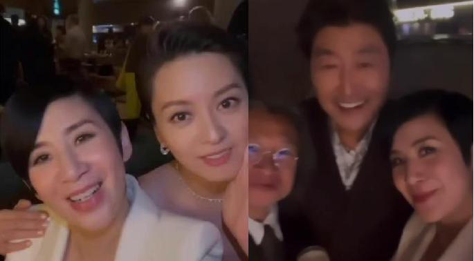 老婆吴君如晒出与梁咏琪、是枝裕和、宋康昊等多位电影人的合影。