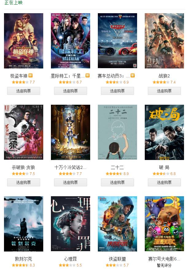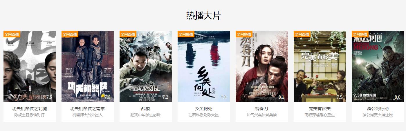 首先来看看电影网的首页最新及最热电影展示。