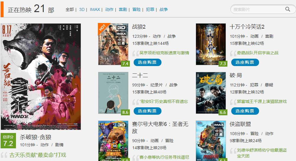 时光网热映21部,小编整理如下。