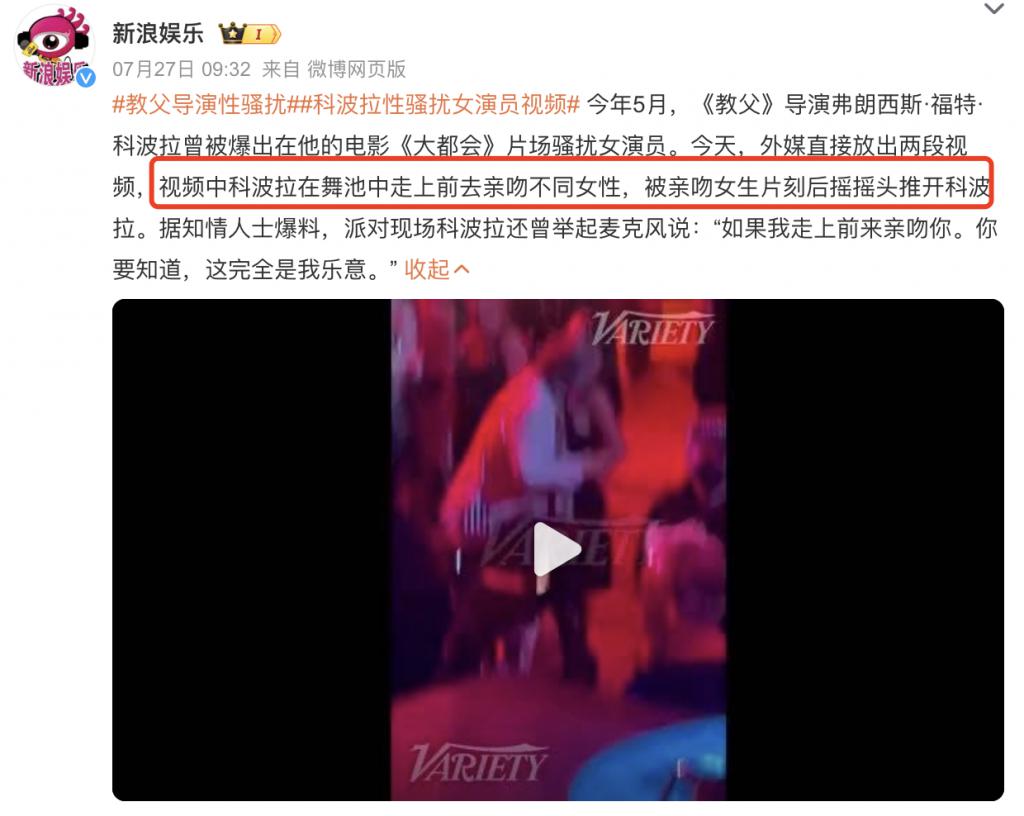 甚至还被爆料,科波拉对女性演员有不当行为。